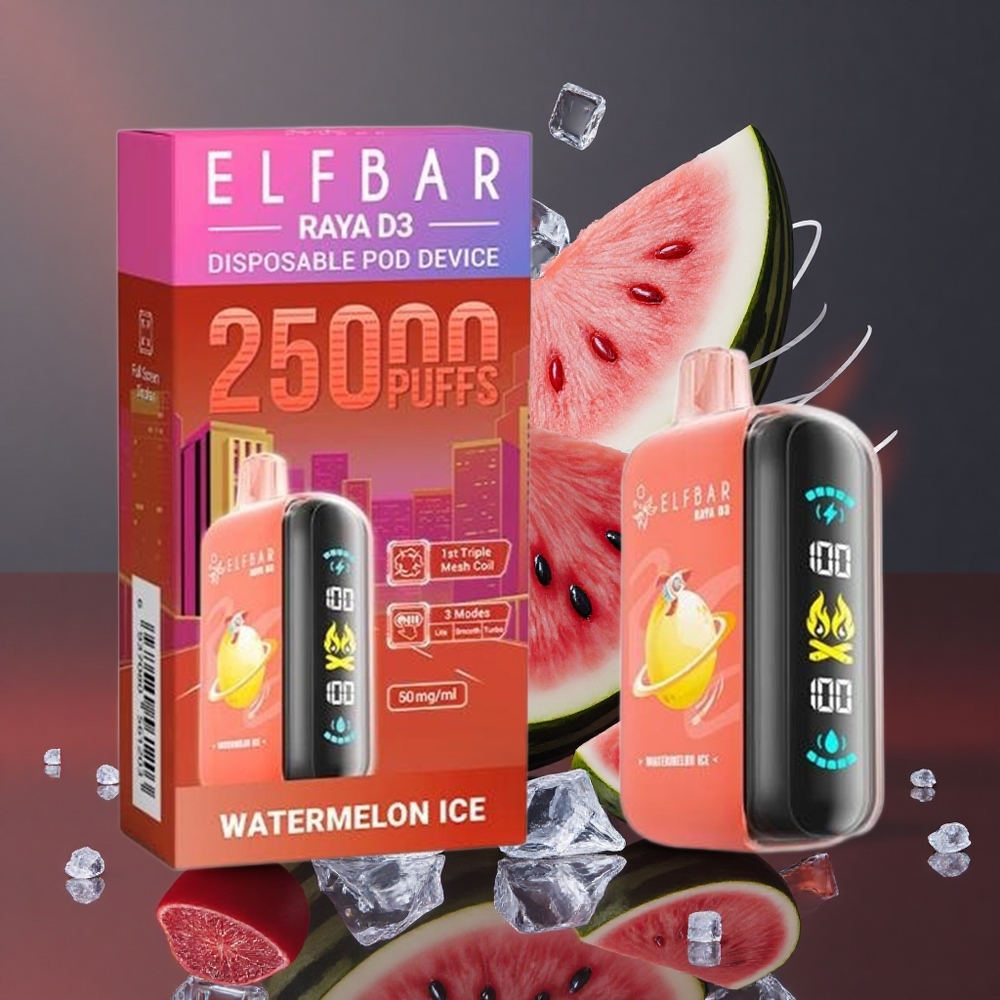 ELF BAR RAYA D3 25000 Puffs Disposable Vape Watermelon Ice with 850mAh Rechargeable Battery & Type-C Charging